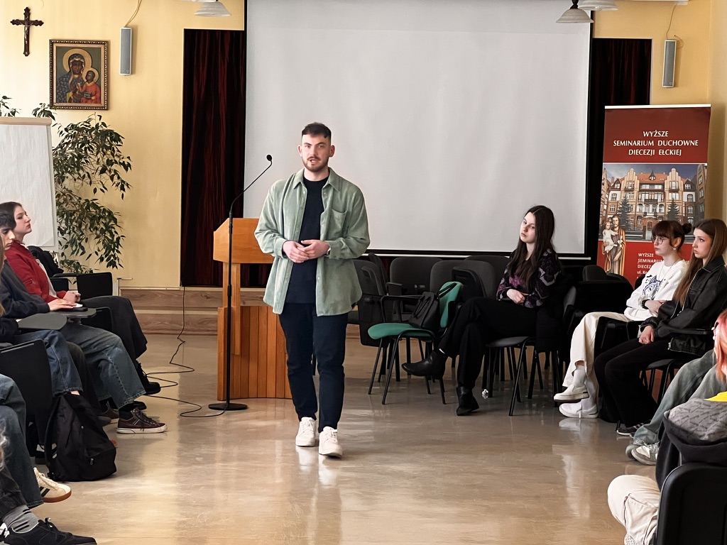 Stypendyści wysłuchali konferencji na temat poszukiwania swojego powołania, którą wygłosił ks. kan. dr Paweł Tarasiewicz, ojciec duchowny ełckiego seminarium. Prelegent zwrócił uwagę na wartość każdego powołania, niejednokrotnie różnego, przez które możemy realizować powołanie do świętości. „Powołaniem, którym obdarzony jest każdy człowiek, jest właśnie powołanie do świętości” – podkreślał kapłan.